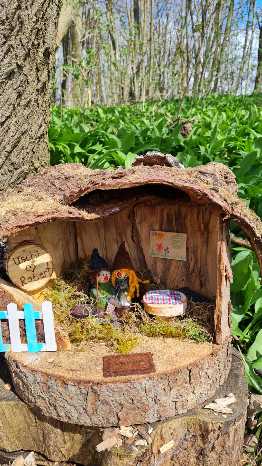 Seit einigen Tagen gibt in bei Schwindkirchen in der Nähe vom Waldkindergarten einen Waldwichtelweg zu besichtigen